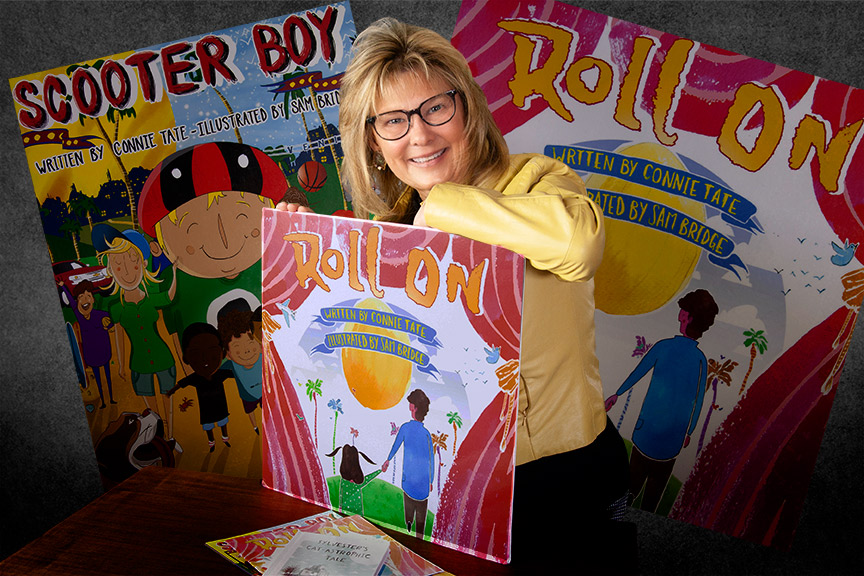A: I started out teaching pre-school a few decades ago. From there, I taught Kindergarten and First Grade. During that time, we had another child – three altogether. I got my Master’s Degree in Curriculum and Instruction. I taught at California State University, where I oversaw the California Reading and Literature Project. I pursued a doctorate and finished when I was 60. I then decided to follow my bliss and write stories of pets, mischief, and everyday experiences of young children who brighten the days of adults. My first book, “Roll On,” was inspired by my granddaughter Wren and a large spaghetti squash. My second book was “Scooter Boy,” and then “Sylvester’s CAT-astrophic Tale.”
